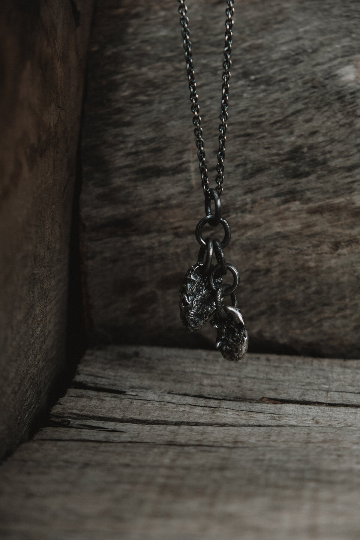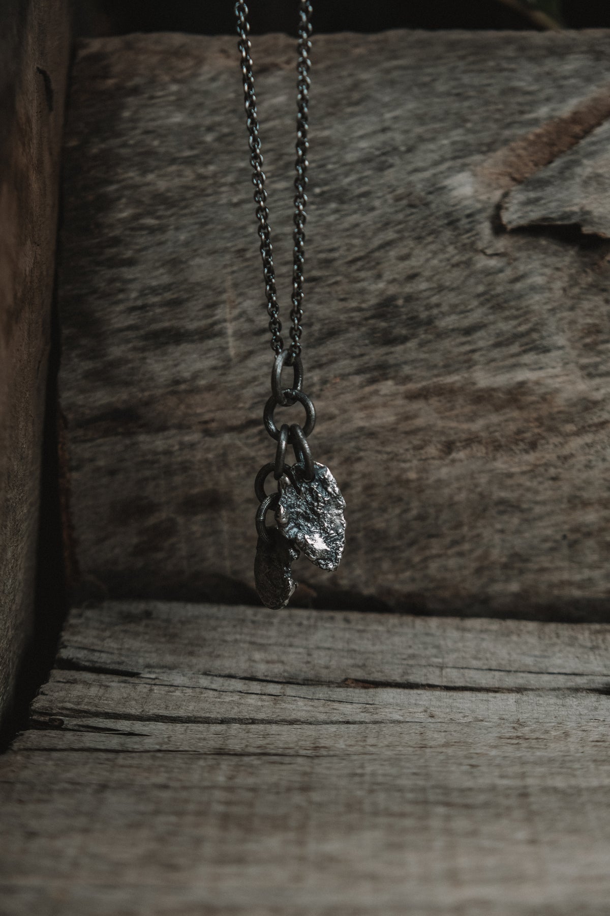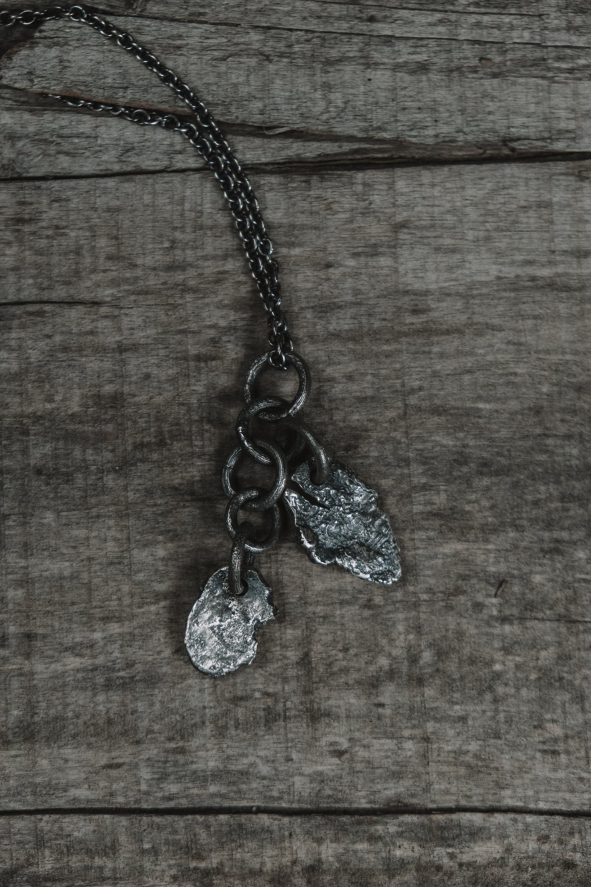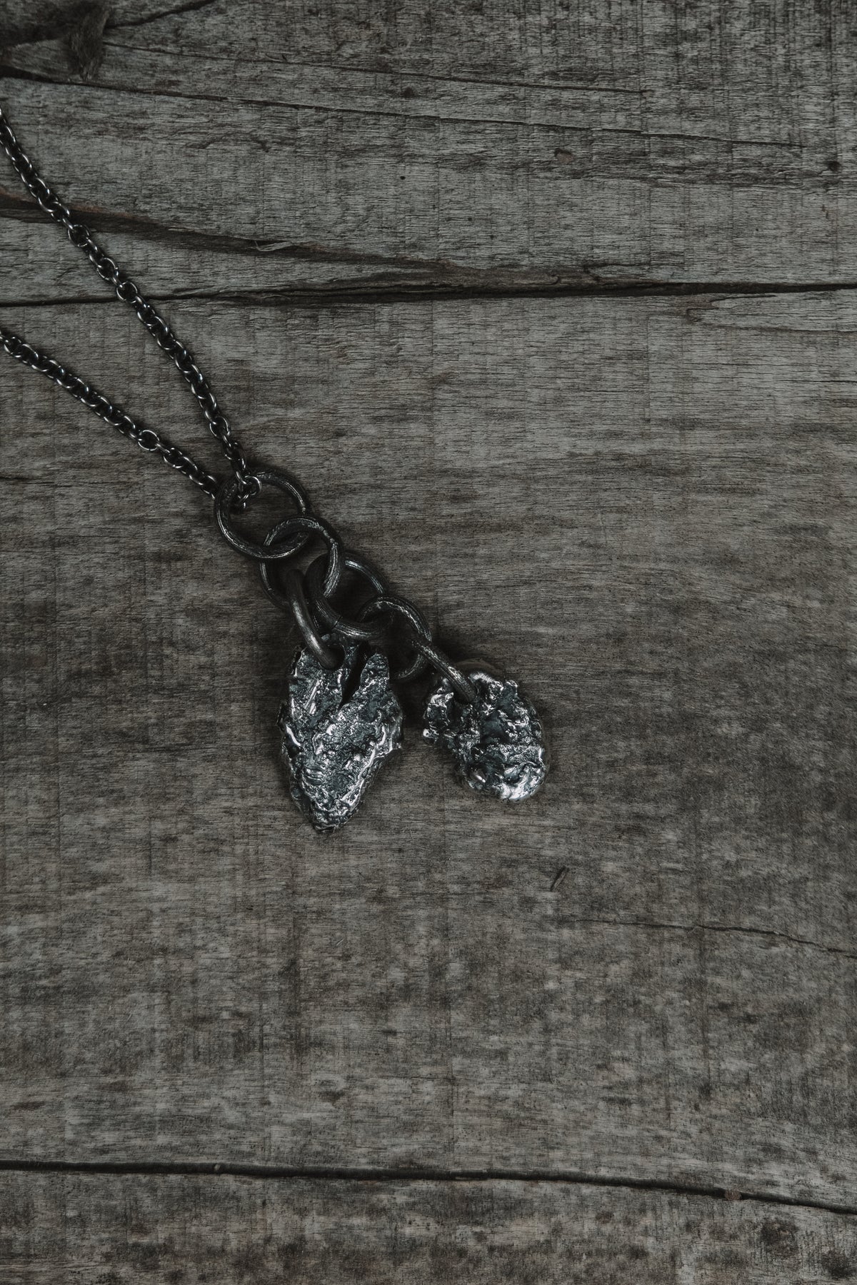 This piece is made of oxidized sterling silver.